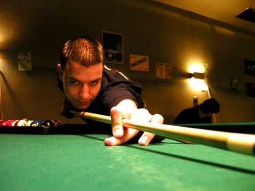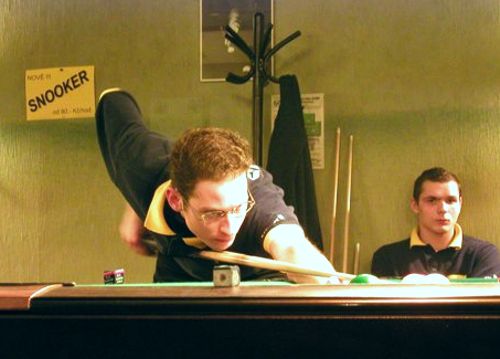 Asi absolutně nejdelším zápasem se prezentovali Marek Hajdovský a Ota Zeman. Oba hráči mají svůj rekord ve výši brejku přes 100 bodů. Chtělo by se napsat, jak půjdou k otevřenému stolu, dohrají. Opak byl pravdou, dohráli sice zápas v 22. náběhu, ale! Na výsledek si museli všichni počkat dvě a čtvrt hodiny. Ano, šílené. Marek začal zápas suverénně, brejky 20 a 28 bodů šel do vedení 54:22. Ota zahrál brejky 14 a 13 bodů a konec. Dál to bylo taktické tahání o koule, které nakonec se štěstíčkem zúročil Marek ve své vítězství. Postoupili oba, protože třetí hráč skupiny, Pavel Halamka, nepředvedl vůbec nic, jen se zbloudile motal okolo stolu s tágem a měl snahu o něco. To druhá skupina byla zajímavá. Před jejím započetím se nedalo vsadit na nikoho. Hráči D. Halamka, Gajda, P. Zeman a Sedláček jsou zárukou slušného kulečníku. Pavel Zeman měl nejlepší formu a postoupil z prvního místa. Na Honzu Sedláčka (100:37) si vystačil s největším náběhem 18 bodů, na Petra Gajdu ( 100:55) stačilo 21 bodů a čtyřikrát 12 bodů. Na Dominika Halamku ( 100:70) mu stačily v závěru zápasu brejky 21 a 26 bodů. Za stavu 94:43 pro Pavla se Dominik pokusil zaútočit, ale při brejku 27 bodů nedal a Pavel dohrál. Nicméně, čtrnáctkový koncert předvedl Dominik v obou dvou zbylých zápasech. Petrovi Gajdovi (100:63) zahrál brejk 74 bodů a Honzovi Sedláčkovi (100:12) zahrál 73 bodů. Petr Gajda se probudil až v zápase s Honzou Sedláčkem a uhrál brejk 46 bodů. Tato skupina byla asi nejkvalitněji zahraná. Ve třetí skupině předvedl svůj návrat na výsluní Honza Janata, porazil Škvora (100:23), brejky 41 a 43 bodů, Křenka (100:47 ), sérií brejků 23, 24, 26 a znovu 26 bodů. Křenek zahrál pouze dva brejky 21 a 26 bodů. Janata poráží i Kraušnera (100:36) s brejkem 44 bodů. Jako druhý postoupil Lukáš Křenek, Kraušnerovi (100:56) zahrál brejky 37 a 20 bodů, Škvorovi (100:66) zahrál 47 a 40 bodů. Škvor hrál dobře, zahrál brejky 20, 25 a znovu 20 bodů, ale po třech faulech se mu odečetlo celkem 18 bodů a to zápas rozhodlo. Škvor pak své umění dokázal v zápase s Kraušnerem (100:38), když zahrál brejky 32, 17, 18 a 19 bodů. Poslední čtvrtá skupina byla ve znamení kulečníkového mládí. Hned první překvapení padlo na účet Jakuba Jelínka, kterého porazil Tomáš Sedliský (100:53 ) s brejky 15, 11, 21 a 13 bodů. Nebyl to pohledný zápas, ale byl účelný. Zklamáním ve skupině byl David Žalman, ten postupně prohrál s Jirkou Hofmanem 81:100, když ještě v 38. náběhu vedl 81:73. Hofman však stav otočil 22 bodovým brejkem a David se již nevzpamatoval. Prohrál také s Jelínkem 33:100. Jelínek zahrál první brejk 26 bodů, pak přidal 15, 13 a 11 bodů a bylo rozhodnuto. Prohrál i s Sedliským 71:100, když se Tomáš prezentoval brejky 27, 30 a 15 bodů. Dramatický vývoj rozhodly zápasy mezi Jelínkem a Hofmanem 100:46 (Jelínek zahrál brejky 28 a 26 bodů) a mezi Hofmanem a Sedliským (100:46), když ani jeden nic nezahrál. Byl to pouze boj. Rozuzlení v podobě postupu do K.O. padlo nakonec v skóre mezi Sedliským, Jelínkem a Hofmanem. O postupu Jirky Hofmana rozhodlo 5 bodů! Jako první postoupil Jakub Jelínek. Smutný Tomáš Sedliský opustil hernu, dvakrát vyhrál a přeci to nestačilo. V pavouku jednoduchého K.O. došlo k zajímavé situaci. Los a nasazení do skupin udělaly své, ve spodní části pavouka byli jen hráči Balabušky, v horní části dva hráči Harlequ´inu, jeden Blue-Pointu a jeden z Řipské. Bylo tedy jasné, že ať to dopadne jak to dopadne, bude ve finále jeden z Balabušky a jeden ze zbytku českého kulečníkového světa. Jako první využívá Marek Hajdovský herního rozpadu Dominika Halamky (100:88), ani jeden nezahrál brejk přes 20 bodů, oba hráli shodně 18, ale přeci jenom to vypadalo, že Marek víc chce. Jakub Jelínek v zápase se zkušeným Otou Zemanem rozhoduje zápas dvěma brejky po sobě 35 a 17 bodů. Na to už Ota nedokázal odpovědět a Jakub vítězí 100:60. Jako další postupující je Lukáš Křenek, když poráží Pavla Zemana 100:56. Pavel sice vede po 33 bodovém brejku 33:0, ale pak Lukáš zahrává kombinaci 17, 43 a 27 bodů. Postupuje do semifinále, kde na něj již čeká Honza Janata. Ten si lehce poradil s Jirkou Hofmanem 100:34, když v osmém náběhu prohrával 8:21, ale sérií pěti náběhů s brejky 8, 43, 13, 12 a 15 bodů otáčí stav. V semifinále vede Janata po brejku 22 a 13 bodů nad Křenkem 46:7. V desátém náběhu hraje Křenek 54 bodový brejk a po sérii jistot a daných koulí jde do vedení 98:59. Pak však Honza prokázal neuvěřitelnou zarputilost a obrátil stav brejky 18, 20 a 3 body na 99:100. Zajímavý výsledek. Druhé semifinále je jednoznačnou záležitostí Marka Hajdovského, zahájil dvěma brejky 15 a 37 bodů, vedl 52:3 a na stole byl jenom jeden hráč a časovaný uzlíček nervů těsně před výbuchem, Jakub Jelínek. Pak na Marka přišla slabší chvilka, uhrál během čtyř náběhů pouze devět bodů, zatím co Jakub srovnává stav brejky 10, 14 a 16 bodů. Stav je 57:43 pro Marka, který jde na stůl, uhrává však pouze 8 koulí a kazí. V tu chvíli se z nervového uzlíčku stává suverénní hráč a Jakub zahrává brejk 52 bodů a otáčí zápas na 69:94. V dalším náběhu přidává potřebných šest bodů a postupuje dosti nečekaně do finále. Jakub do finále nastoupil tak, jak skončil s Markem. Zahrál hned brejk 24 bodů, v šestém náběhu přidal 33 bodů, v dalších dvou nábězích po 15 bodech a stav byl 88:24. Honza Janata už několikrát předvedl, že umí zabrat, po brejcích 13, 13 a 28 bodů zkorigoval stav na 88:78. Jakub Jelínek si však vítězství nenechal vzít, zahrál potřebných dvanáct bodů a vyhrál toto první kolo extraligy v 14.1 nek