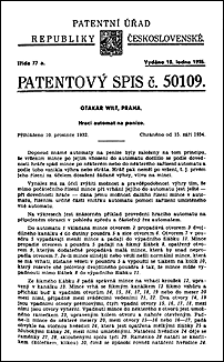 První zmínka Patentního úřadu Republiky československé o výherním automatu je až z 9.června 1927, kdy Franz Fuchs z Dortmundu přihlásil svůj patent na "vrhací hru kuličkovou". Před tímto datem se v r.1919 sice objevila žádost firmy Automat Industrie Gesellschaft Vídeň na závodní hru dostihové typy, ale z technického nákresu a popisu hry vyplývá, že se výherní automat nejedná. Předmětem vynálezu pana Fuchse byla hra, u níž